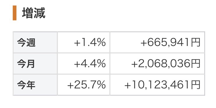 日経平均が反落する中、PFは上昇し、とうとう昨年末比+1000万円となりました。