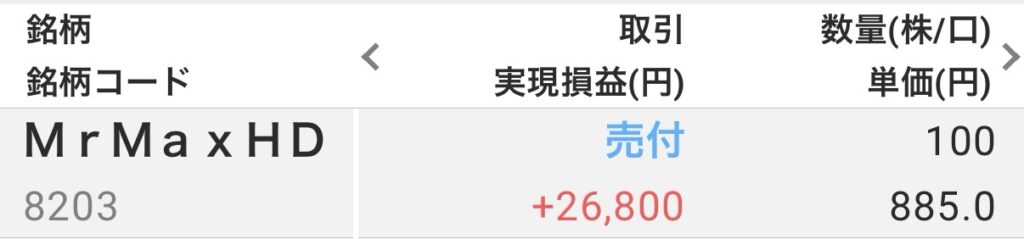 • MrMAXHD(8203) 100株@885円(+26,800円