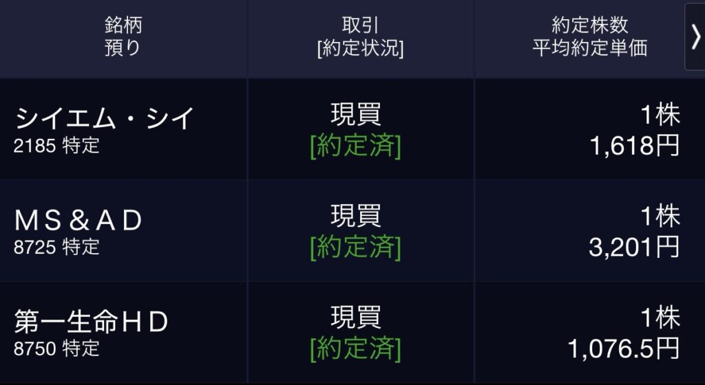 - MS&AD(8725) 1株@3,201円