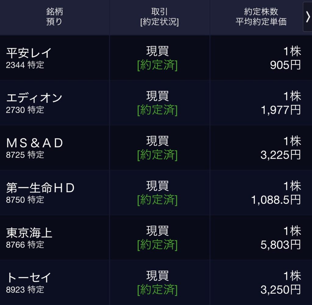 - MS&AD(8725) 1株@3,225円
