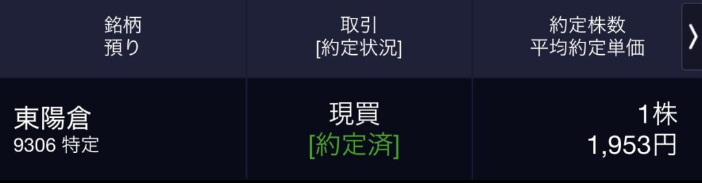- 東陽倉庫(9306) 1株@1,953円