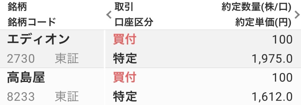 エディオンは、株式投資を始めた時に初めて購入した銘柄であり、久々の単元株購入となりました。