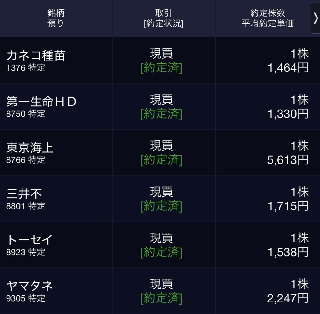 • 第一生命HD(8750) 1株@1,330円
