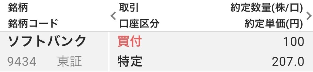 今日は、ソフトバンクを100株購入しました。