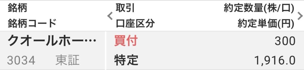 - クオールHD(3034) 300株@1,916円