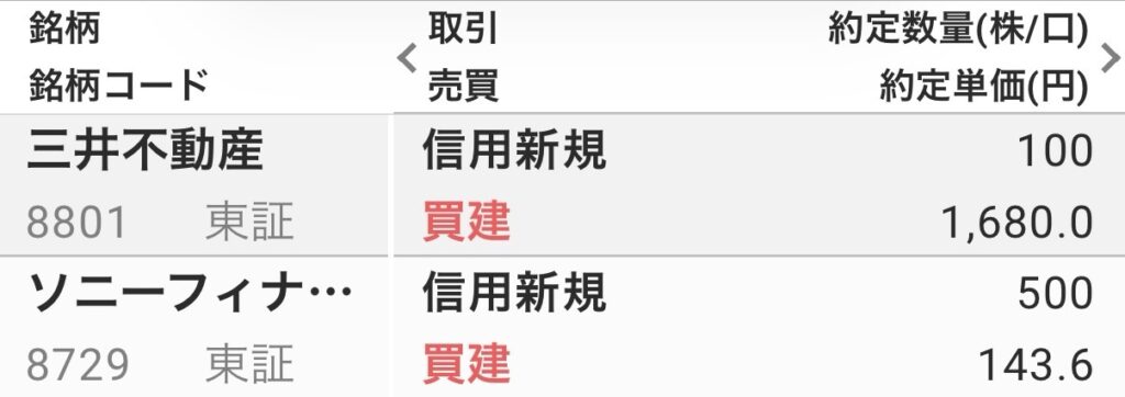そんな中、今日は2銘柄を信用で買い付けました。