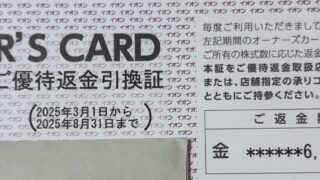 株主優待 イオン(8267)から株主優待をいただきました イオン(8267)から株主優待として返金引換証が届きました。300株保有のため、半年間の利用額207,667円の3%がキャッシュバックされることになり、今回は6,254円が返金されます。2年前に「オーナーズカードのアプリ化」と「現金ではなく... 2025.10.20 株主優待